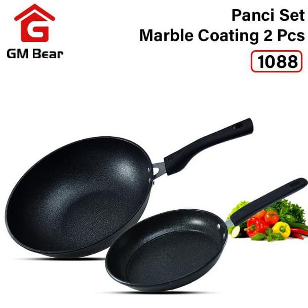 Terbaik Gm Bear Panci Set Wajan Marble Coating Isi 2Pcs . Sumber Gambar : shopee.co.id